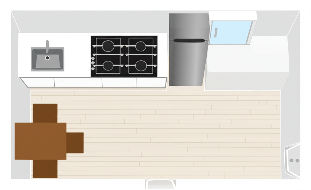 - Avoid placing the sink and stove opposite each other