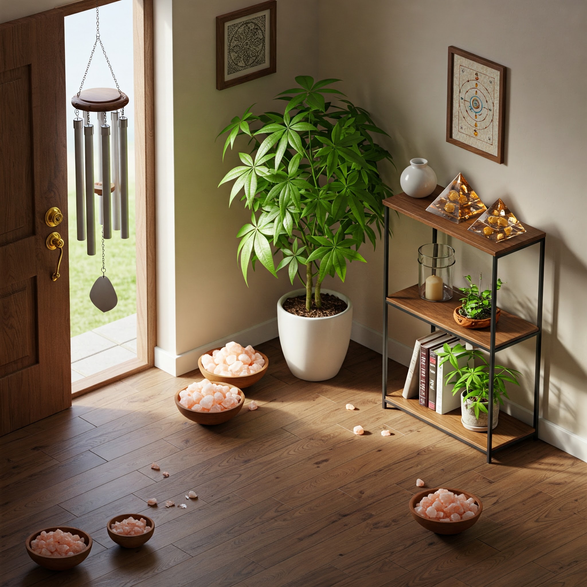 - Wind chimes at entrances for positive energy